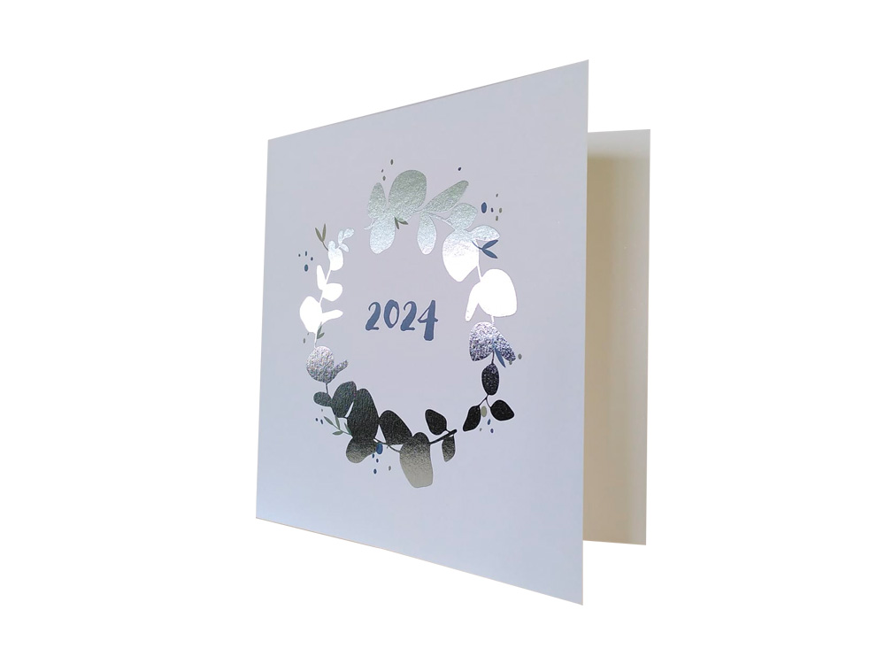 | Description précise | Papier: particules de lune – papier mat et épais – Impression argenté brillant |